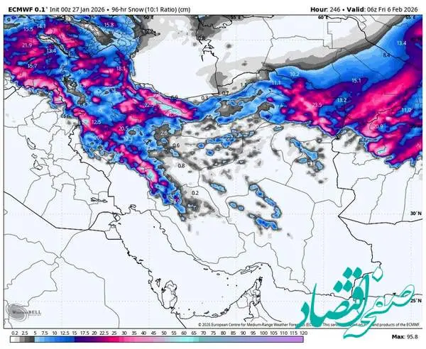 صادق ضیائیان، رئیس مرکز ملی پیشبینی و مدیریت بحران مخاطرات وضع هوا، با تشریح آخرین وضعیت جوی کشور اعلام کرد که از امروز یکشنبه، ۱۹ بهمن، سامانه بارشی فعال است و تا چهارشنبه، ۲۲ بهمن، بارش برف، باران، رعدوبرق و وزش باد شدید مناطق شمال غرب، ارتفاعات البرز و شمال شرق کشور را تحت تأثیر قرار خواهد داد.