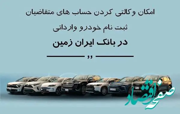 ثبت نام خودروهای وارداتی در بانک ایران زمین با امکان وکالتی کردن حساب