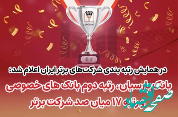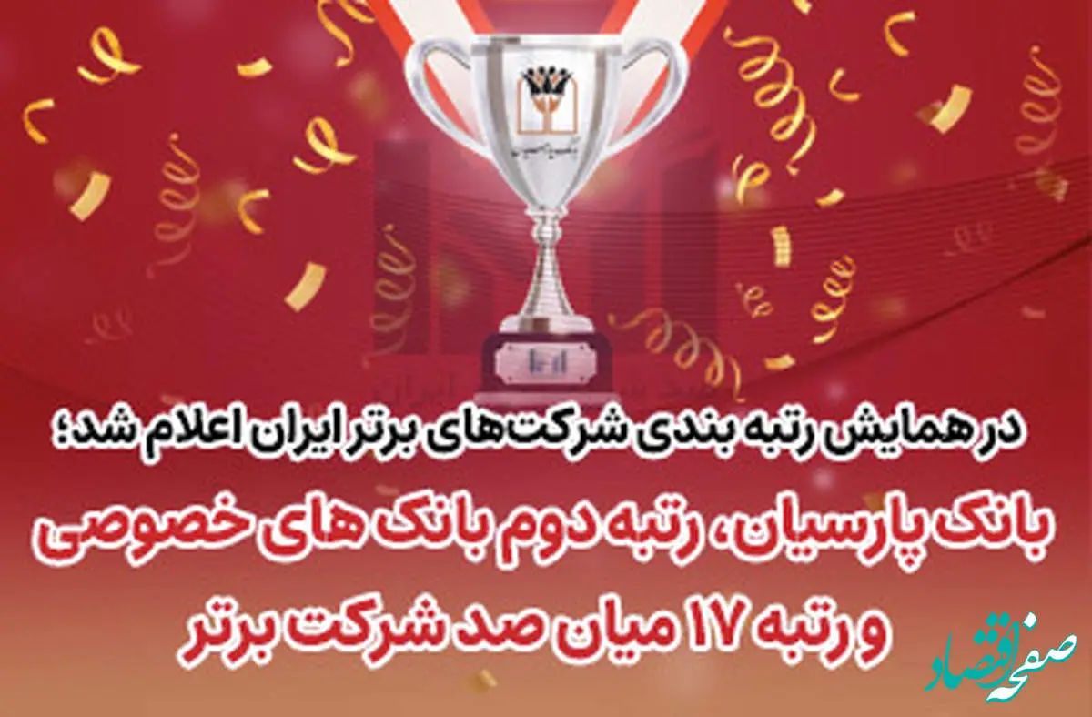 بانک پارسیان رتبه دوم بانکهای خصوصی و رتبه ۱۷میان صد شرکت برتر ایران