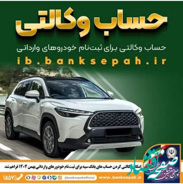 مشتریان گرانقدر بانک سپه میتوانند با وکالتی کردن حساب خود نزد بانک سپه با مبلغ موجودی ۵ میلیارد ریال در طرح ثبت نام خودروهای وارداتی بهمنماه ۱۴۰۴ شرکت کنند.