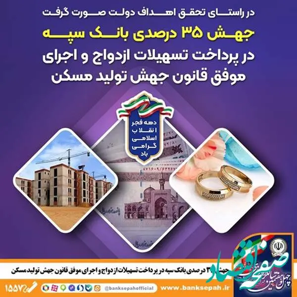 جهش ۳۵ درصدی بانک سپه در پرداخت تسهیلات ازدواج و اجرای موفق قانون جهش تولید مسکن