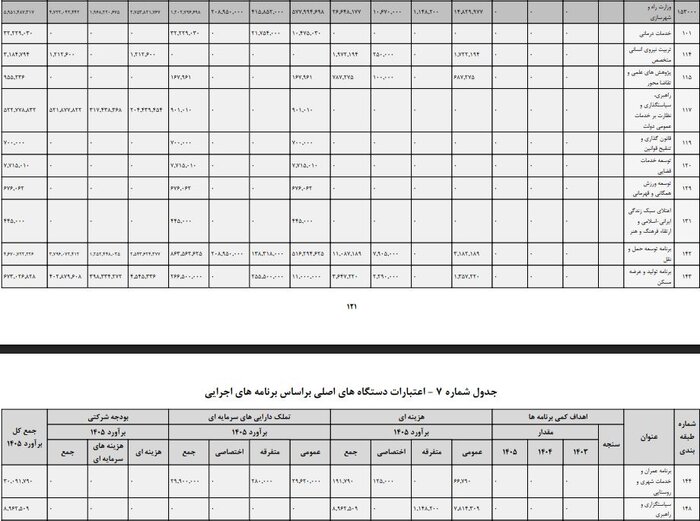 ایرنا نوشت، بر این اساس، برای برنامه توسعه حمل و نقل چهار میلیارد و ۶۷۰ میلیون و ۷۲۲ هزار و ۲۲۶ ریال (جدید)، برنامه تولید و عرضه مسکن ۶۷۳ میلیون و ۲۶ هزار و ۸۲۸ ریال (جدید) و برنامه عمران و خدمات شهری و روستایی ۳۰ میلیون و ۹۱ هزار و ۷۹۰ ریال (جدید) اعتبار پیش بینی شده است.