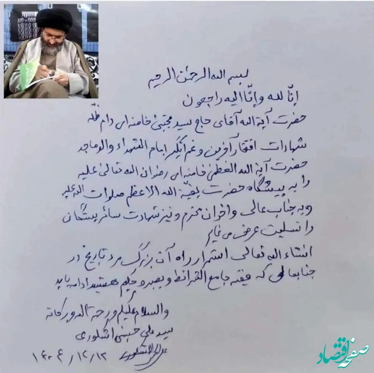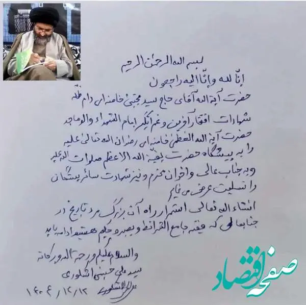 پیام مکتوب عضو خبرگان برای آیت الله سید مجتبی خامنه ای را در تصویر زیر مشاهد کنید.