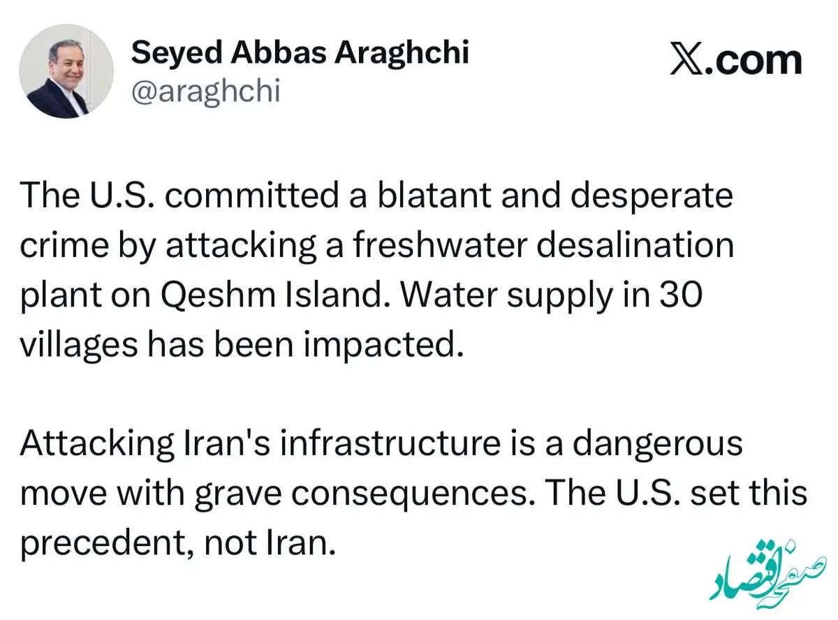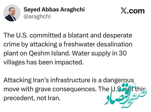 عراقچی نوشت: حمله به زیرساختهای حیاتی را آمریکا آغاز کرده نه ایران!
