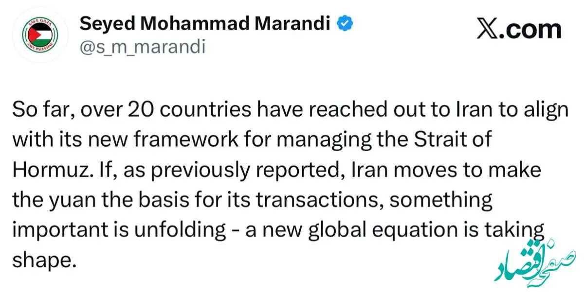 دکتر مرندی: تماسها با ایران برای پذیرش قواعد جدید اداره تنگه هرمز افزایش یافته است