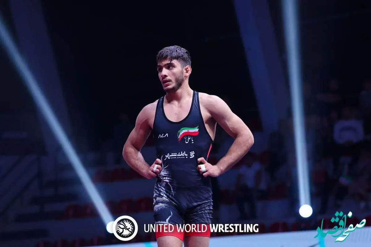 برق طلا بر سینه این کشتی گیر